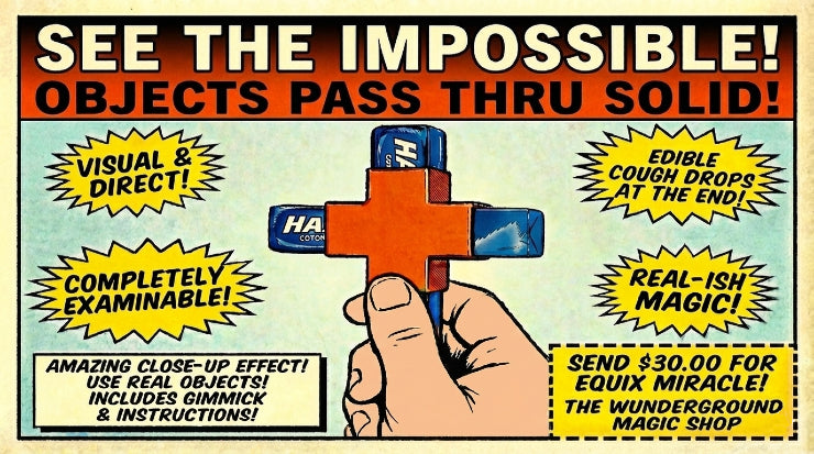 EQUIX is a close-up magic effect where everything can be shown and examined by the audience.