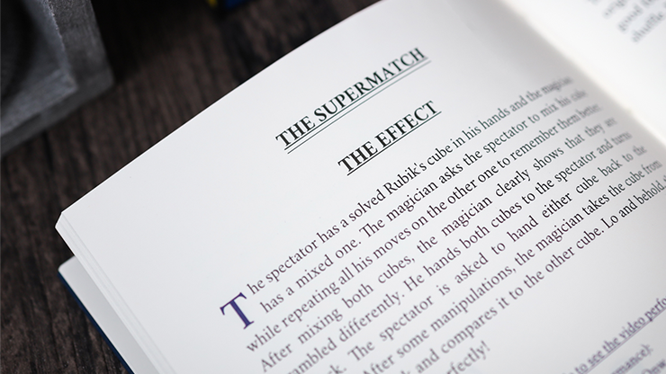 The spectator mixes up a mini cube and placed it in the mini box so that you couldn't see anything. You then take a large cube and match the exact pattern. You can then solve the large cube in any magical solve. Thanks to the little "something" provided together with the booklet, you can perform the above routine with no sleights whatsoever and end this routine with the famous "Mini Cube to Chocolate".