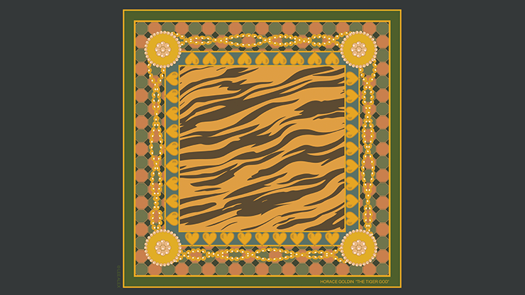 Inspired by the lithographed poster by Moody Brothers, Birmingham, U.K. this "Pocket Devil" incorporates a vivid color palette including Goldin's name, the tiled palace floor, the exotic night sky, the rich decoration atop the cage, elements of the damsel's dress and Lily, Goldin's tiger.