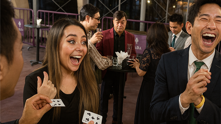 Two spectators each sign their own card. The cards are openly torn in half, leaving no doubt that they're destroyed. The torn pieces are placed into their hands-yet with a touch of magic, something extraordinary happens.