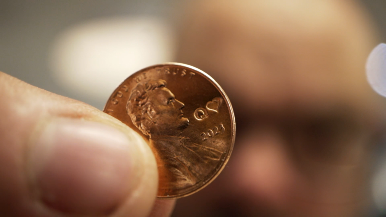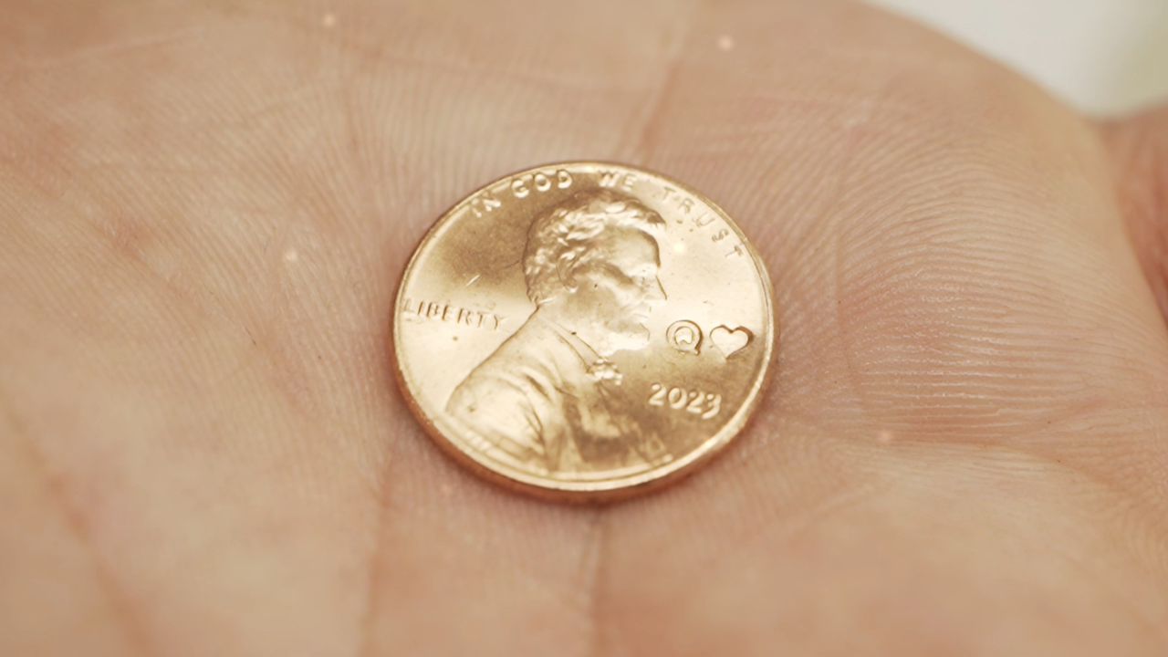 - 1 quarter and 10 pennies, each professionally etched with a playing card design