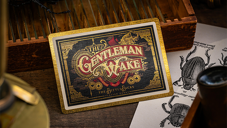 The Beetle Backs, presented by The Gentleman Wake and designed by Widakk Design, is the culmination of a two-year long effort to create a deck of cards perfect for collectors, players and magic enthusiasts everywhere. Classic and beautiful, evoking turn-of-the-20th-century style and elegance and the finest modern handling and playing card printing techniques, the Beetle Backs also tells the Kafkaesque tale of an embattled entomologist deep in study of his chosen field; the Dynastinae subfamily of scarab beetles.