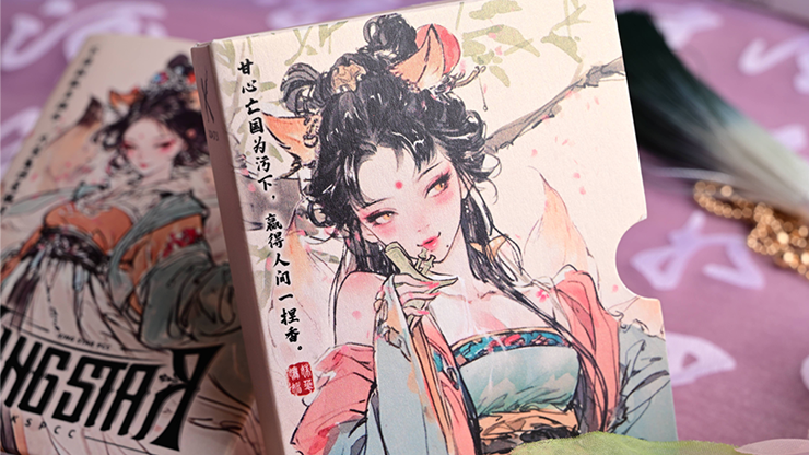 The card box design for Dakki draws inspiration from Su Daji (Dakki) in The Creation of the Gods. Renowned for her breathtaking beauty, she is often referred to as the "shy flower of the moon." However, beneath her captivating appearance lies her true form-the Nine-Tailed Fox Spirit. This duality of allure and mystery is reflected in the intricate design, capturing both her elegance and the enchanting essence of her origin.
