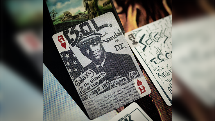 The court cards feature full blown flyers rarely seen and each custom pip was created from actual scans of these archives of punk history.