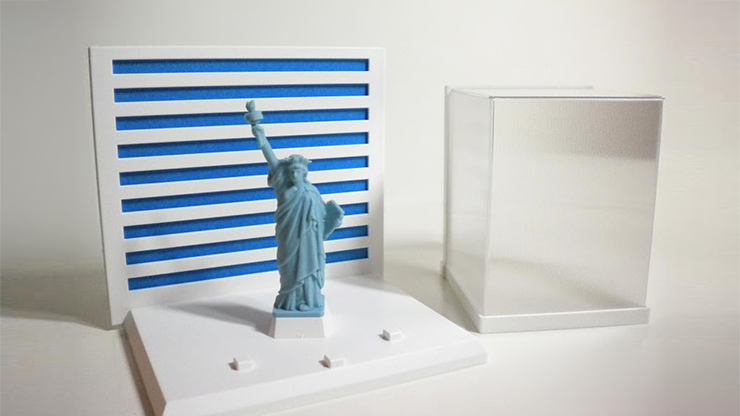 In front of your audience, you assemble two plates and a semi-transparent box. They can clearly see that there is nothing inside the box. However, when you raise the box, a Statue of Liberty figurine magically appears in the empty space! It has always been a magician's dream to make a solid object appear from nowhere. The ingenious creator Lubor Fiedler has finally made this magical dream come true. Your audiences will shriek in surprise when they see the Statue of Liberty appear. This is an extraordinarily visual, brand-new effect, the likes of which have never been seen before.
