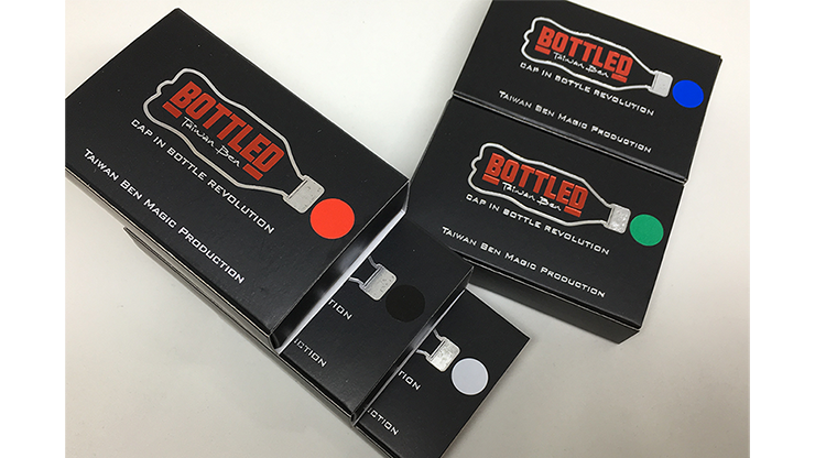 Taiwan Ben's BOTTLED is the smoothest Cap in Bottle you will ever perform. The method is DEVIOUS! This is a new concept for the Cap in Bottle effect. It's very easy to learn and perform. BOTH bottle and cap can be 100% inspected BEFORE AND AFTER!! Place the cap on the palm of your hand. Quickly bring the bottle down onto your hand. The cap's now inside the bottle! Miracle!