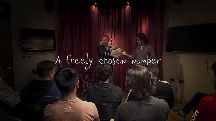 The magician asks a spectator to come on stage. Assume, in this example, that his name is Tom. A plastic, yellow envelope with a big label is shown, with words printed on it: "Choose a Number from 1 to 100." The magician asks Tom to point to anyone in the audience and asks him to choose any number. It is written on a sticky note and sticks it on Tom's right palm.