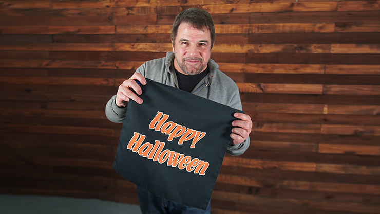 Imagine that you have a handkerchief and it shows on both sides that it has many mixed letters printed that have a secret message and in an instant when blowing on the handkerchief the letters are magically arranged and put together thephrase: "Happy Halloween"!