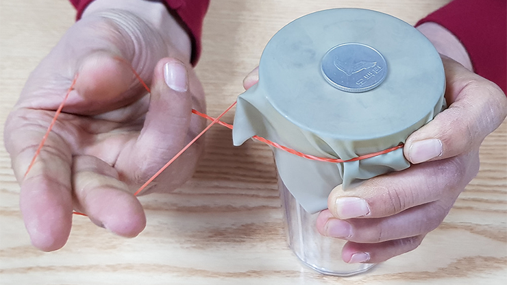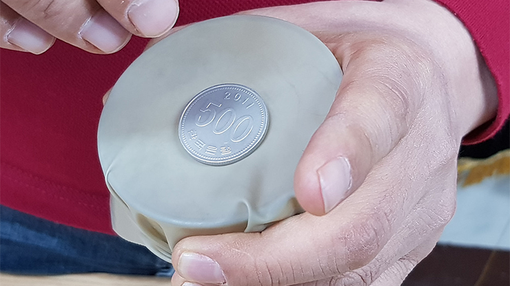 A coin magically penetrates through a piece of rubber!
