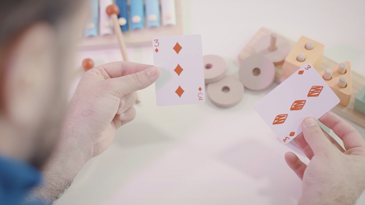 The coolest thing about Child's Play is that both cards are always in full view. There are no sneaky moves. The faces of both cards are fully shown.