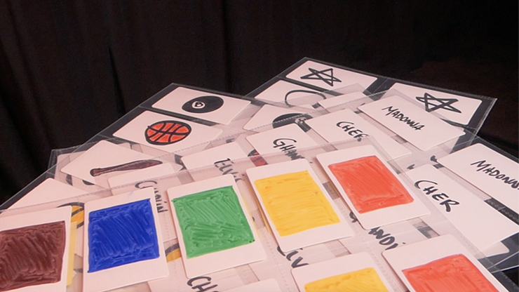 You can use business cards, letters, photos, papers,... predict company logos, fruits, sports, flags, names, words, numbers, ESP symbols, characters...anything you can think of. You can customize it by drawing or writing by hand, or printing directly from the computer.