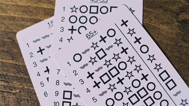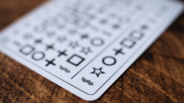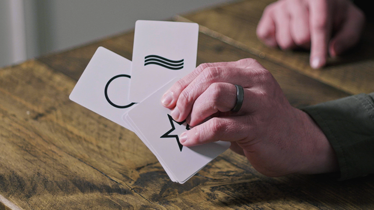 Three cards totalling 60 sequences of ESP symbols are given to your participant. They choose a card, and choose a sequence. Each sequence has its own "target" symbol, which you will attempt to reveal.