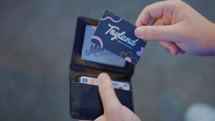 The magician introduces a business card from a Toy Shop that he loved when visiting New York. He explains that the Toy Shop had plenty of awesome toys. He says that he is going to perform a magic trick with that business card and one of the toys that he liked the most.