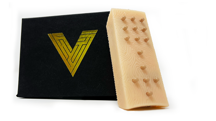 Versa is the only remote control made specifically for real magicians and mentalists. The remote is made of an impact resistant, flesh-tone plastic, so it can be easily held and concealed in the hand, in plain sight. It's designed to look like a finger, and your spectators can stare right and your hand and never suspect a thing. Plus, Versa is the only remote to sport a fingerprint texture design, camouflaging it even more right at your fingertips. Each of the 15 buttons of the versa remote are made of solid metal, and they have been meticulously designed to provide feedback on every press. And the buttons are raised so they can easily be felt through a pants or jacket pocket. With 15 buttons, Versa has the most buttons of any remote ever made for magicians and mentalists in a size this small. It sports both a number pad and directional pad configuration, so it works seamlessly with all your favorite magic apps.
