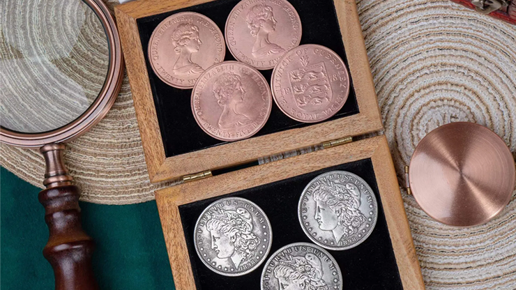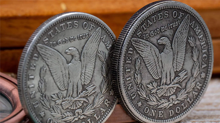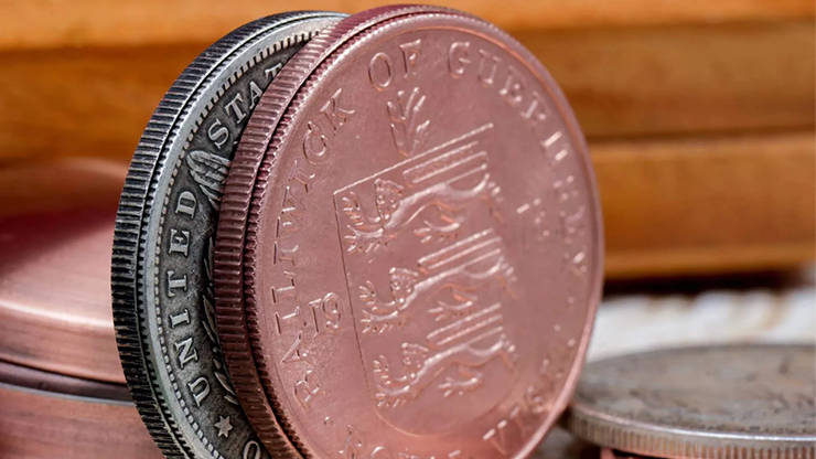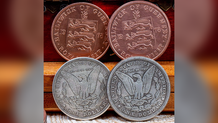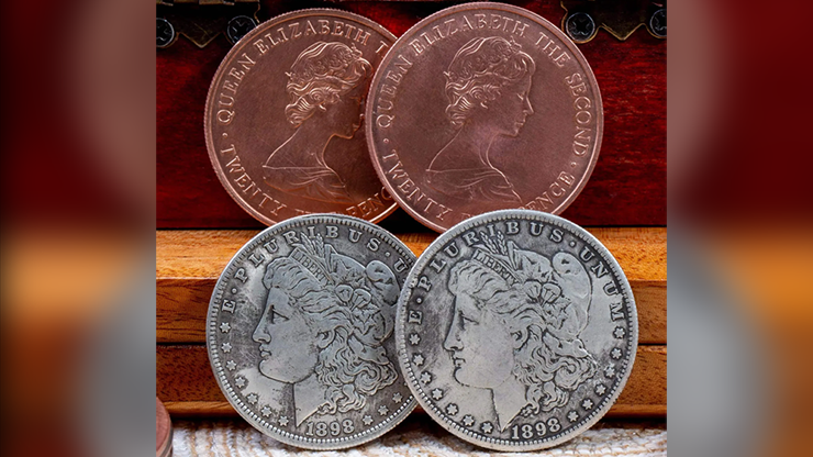 This time, you can perform this classic coin magic effect with an Penny coin and a Morgan coin.
