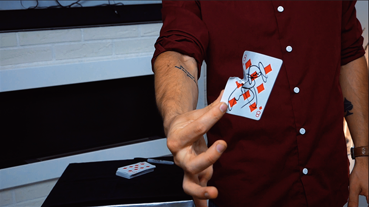 The spectator's card is signed and lost in the deck, break the button of your shirt and put it in the spectator's hand, the button will find the card ... How? Return to the shirt and the card will be sewn with it