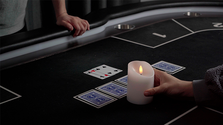 The candle finds the spectator's freely chosen card! As the spectator pass over the card with the candle, it will light itself at some point. The card is the spectator's selection. -